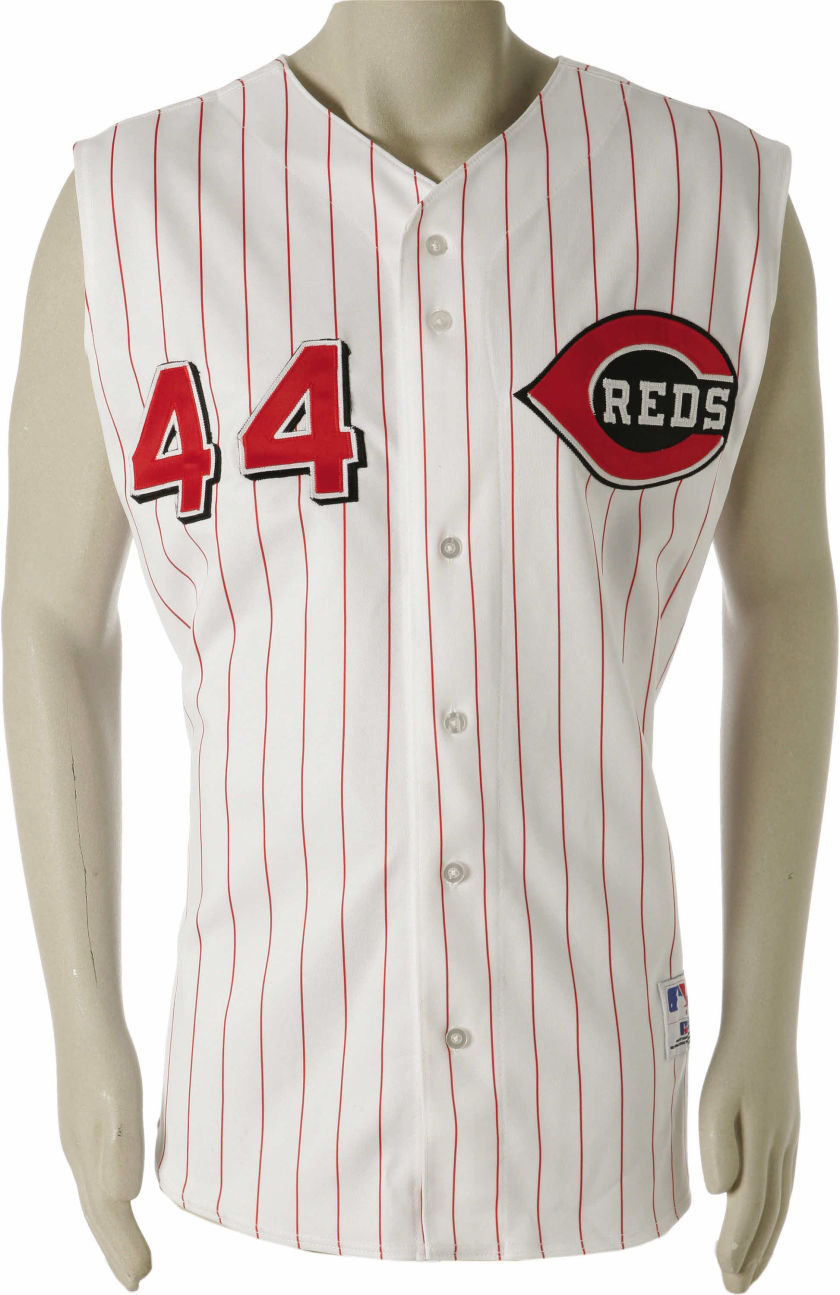 On alternate jersey, "REDS" added to the logo, numbers added to front, white outline is removed from piping and trim.