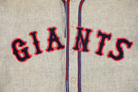 "GIANTS" wordmark added to home jersey. Jersey numbers first appeared on June 23, 1932.