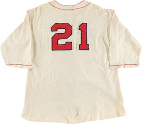 Around 1935, spring training jerseys were made of lightweight "Palm Beach" material. Not used in the regular season. Not certain of the manufacturer.