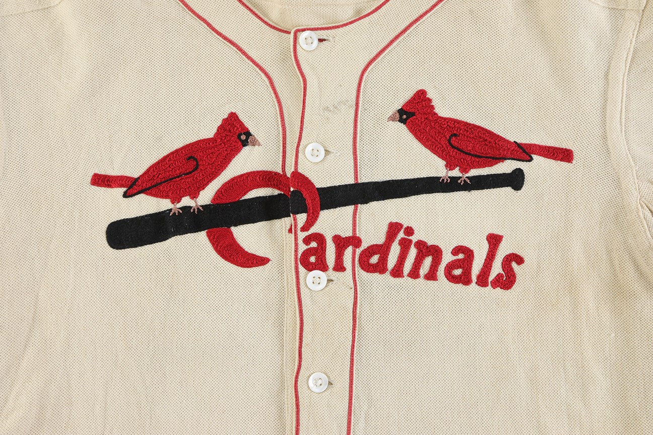 "St. Louis" replaces "Cardinals" on home jerseys for the 1930 World Series. The same jerseys are used in the 1931 season.