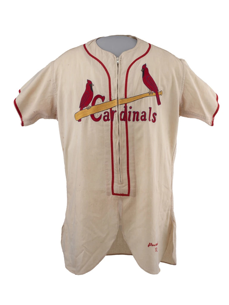 This is the 1941 home jersey with the "Health" sleeve patch added for reuse in 1942. The 1941 cap has a cardinal logo.